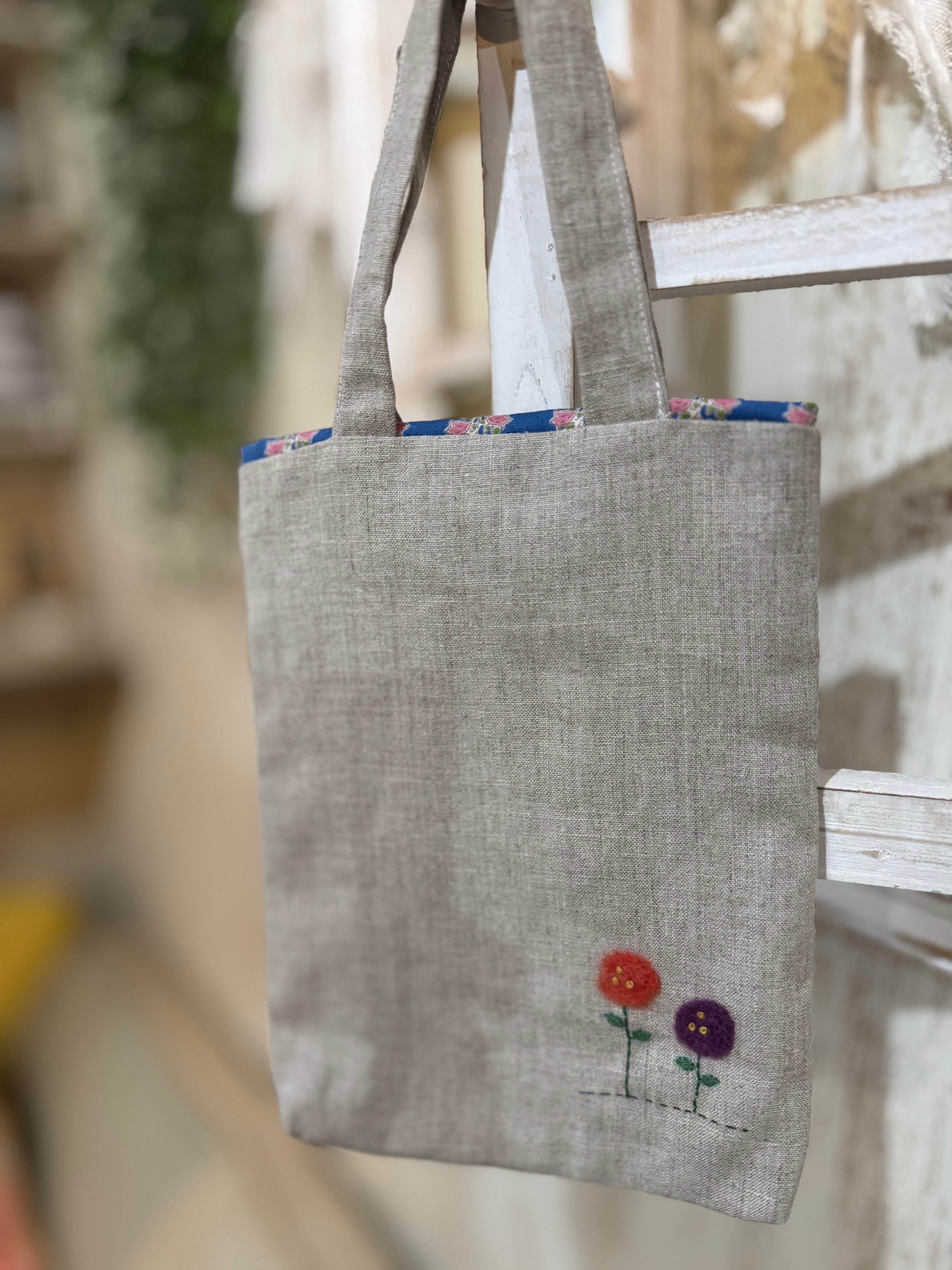 小さなリネンかばんお花の刺繍(送料込み)ぶるー④