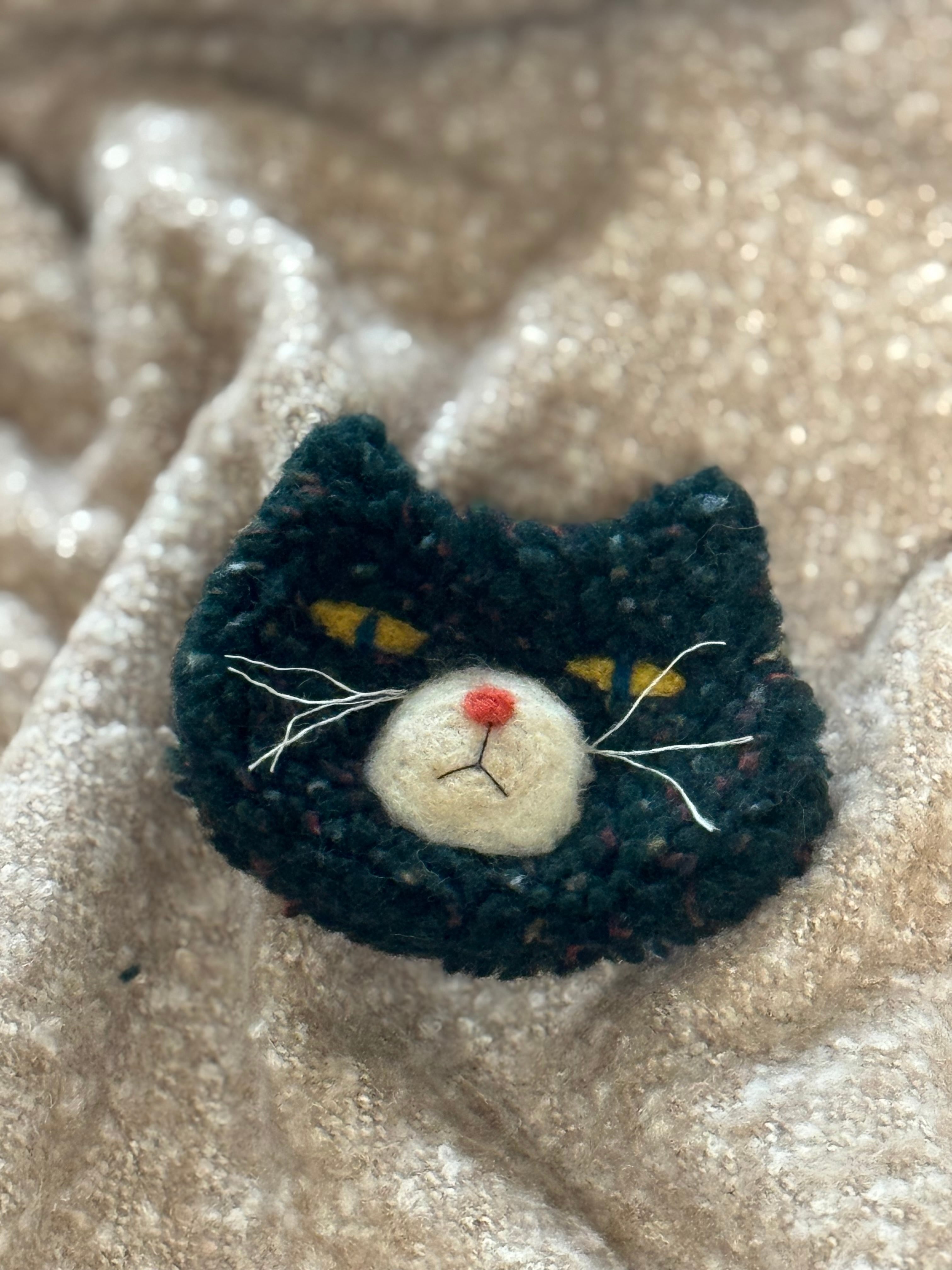 大きいムクムク猫ブローチ ダークグリーン(送料込み)