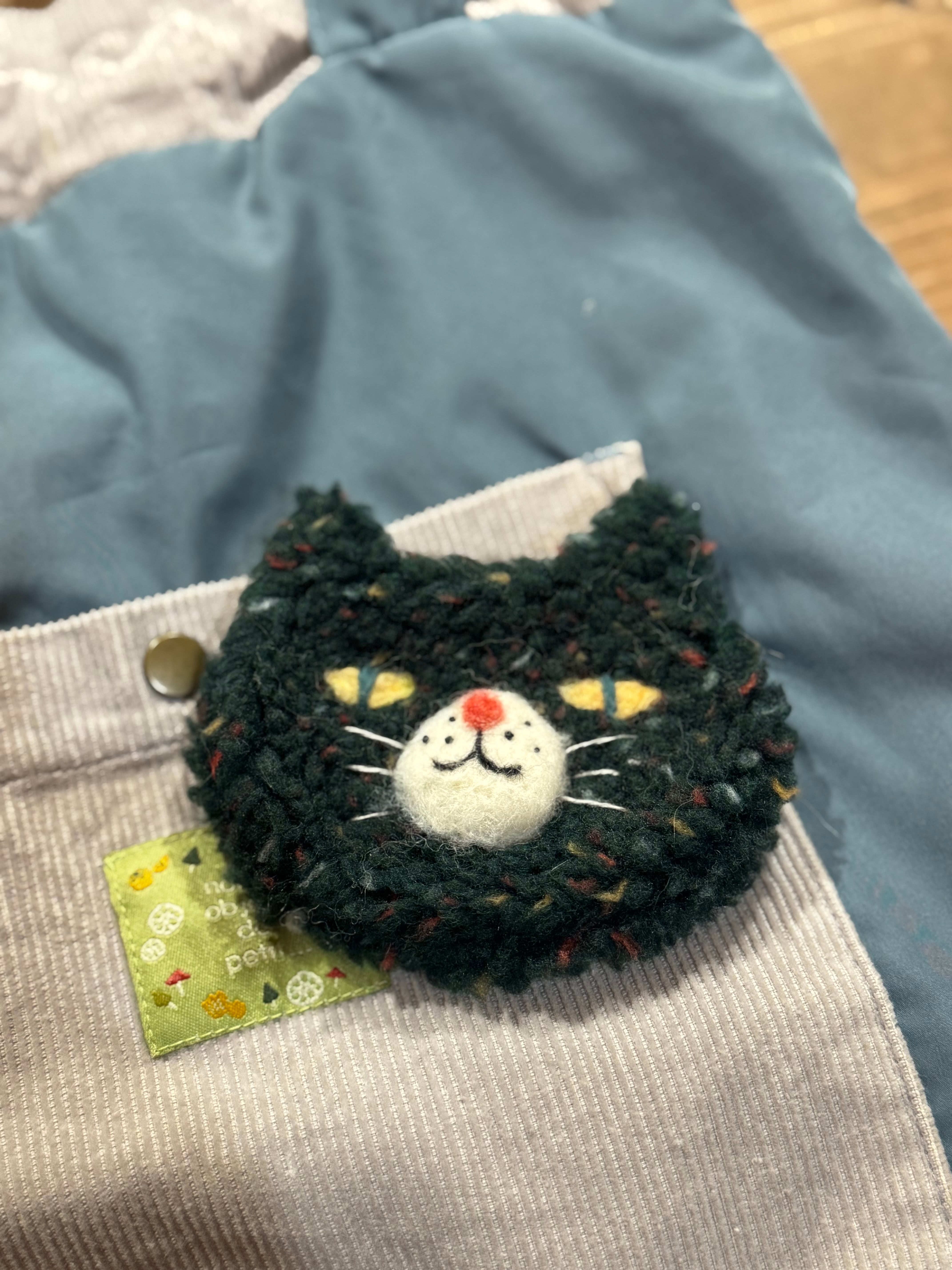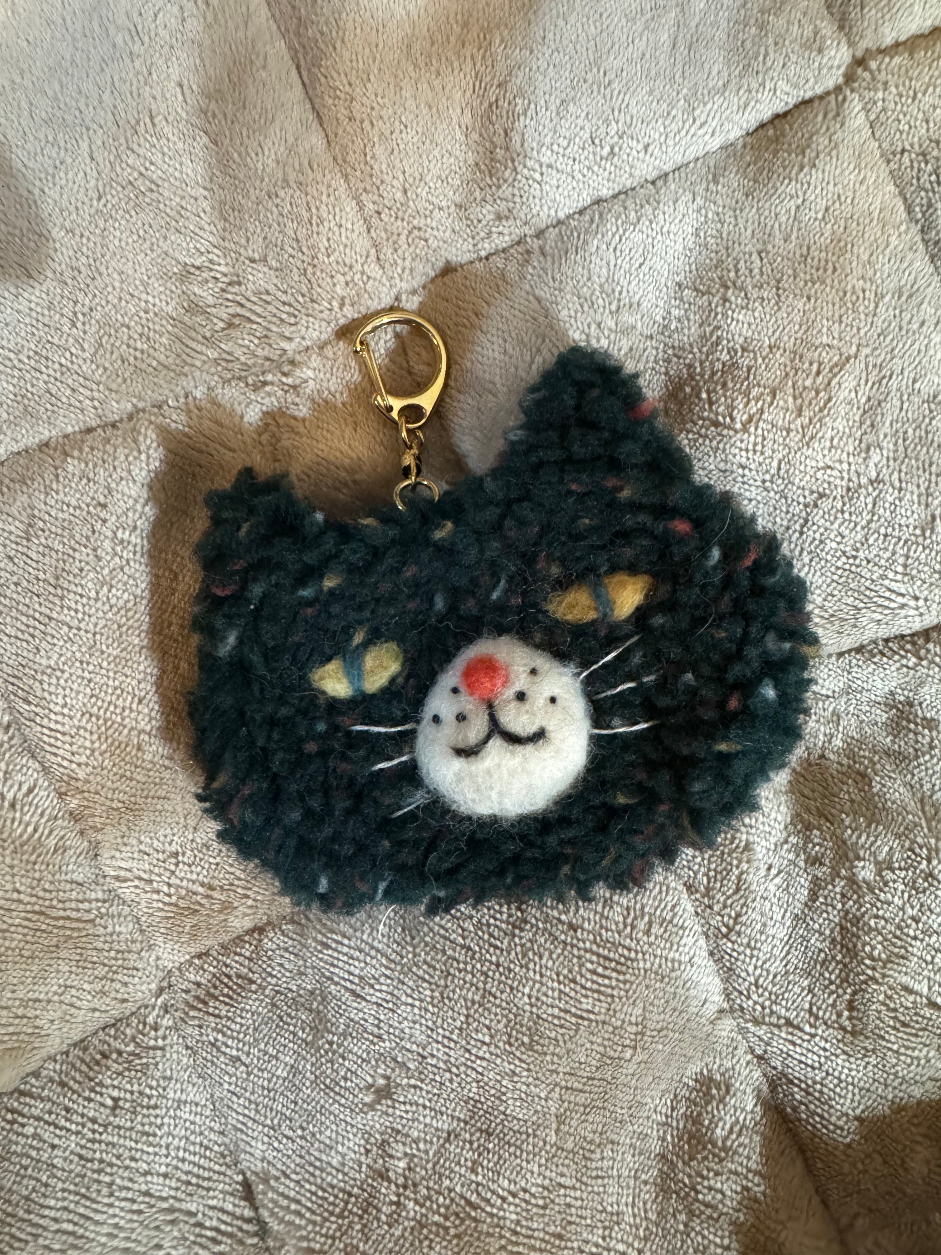 大きいムクムク猫キーホルダー ダークグリーン(送料込み)