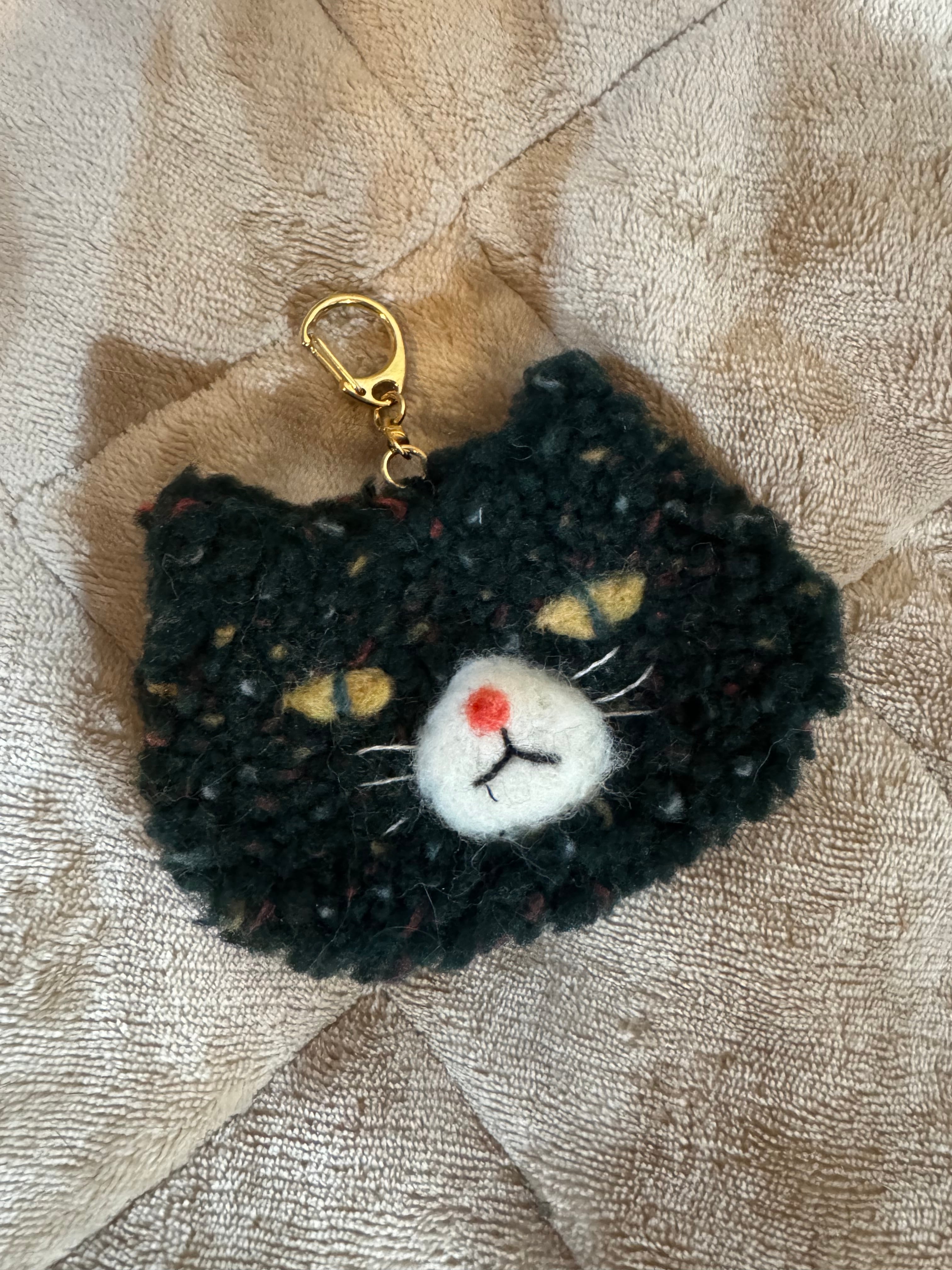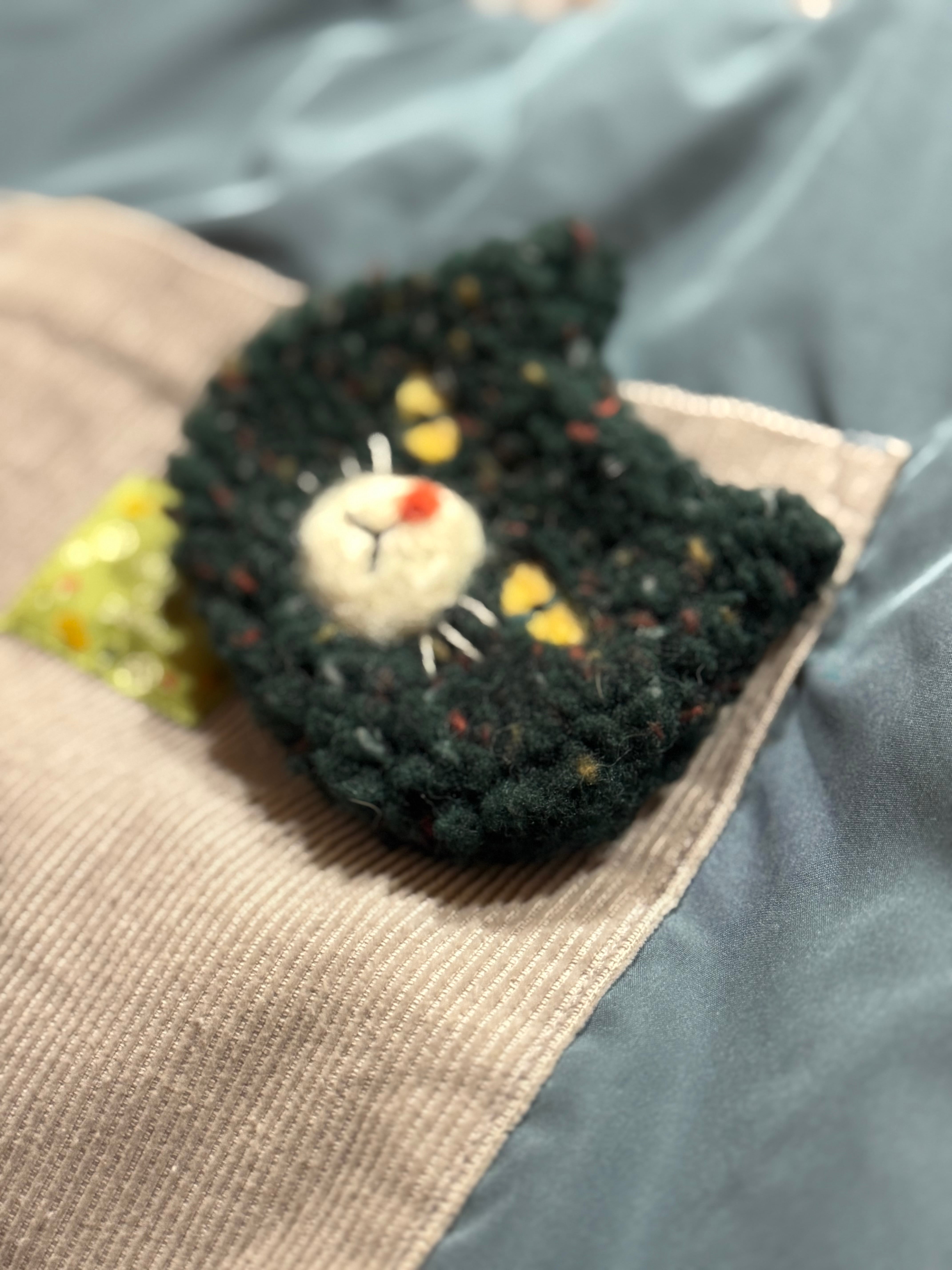 大きいムクムク猫キーホルダー ダークグリーン(送料込み)