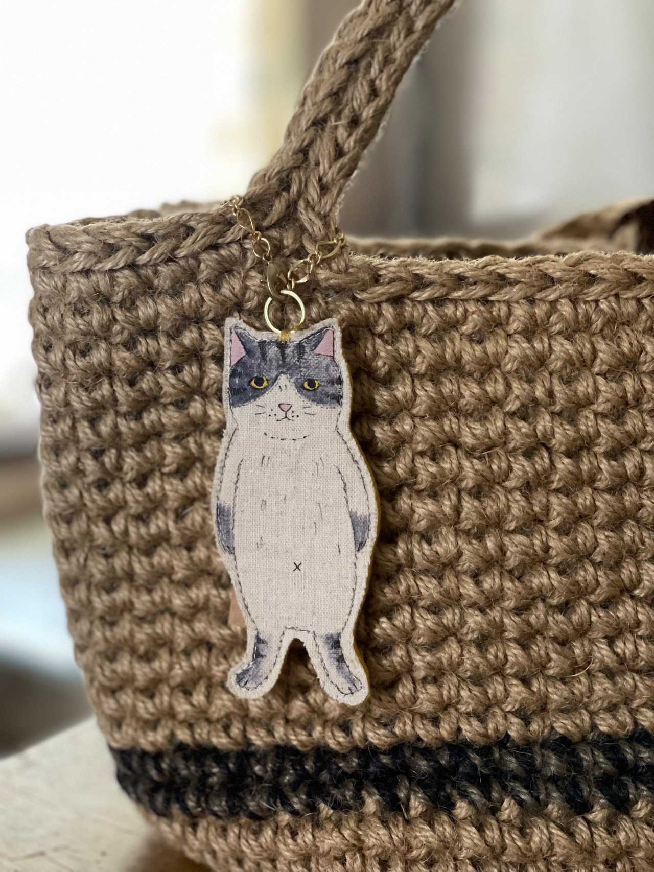 リネンの猫のチャームです。